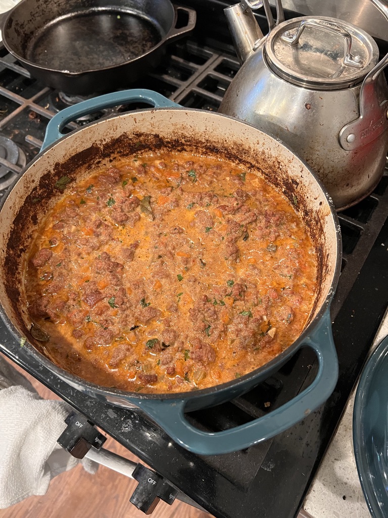 These meat-only properties add flavor, texture, and viscosity, and give meat the endurance to be cooked, without going dry, for sufficiently long periods of time to extract flavors that take significant time to emerge. Plant-based protein, from my experience, can’t be cooked for that kind of time while retaining sufficient moisture. Nor do meat alternatives have the structure to achieve a juicy, flavorful raw state that offers a minimally acceptable amount of fibrous texture like red meat.